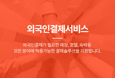 단말기를 통해서 외국인 신용카드 결제나 간편결제 등의 결제수단을 이용하여 안전하고 편리하게 결제할 수 있도록 지원하는 글로벌 결제 서비스입니다.